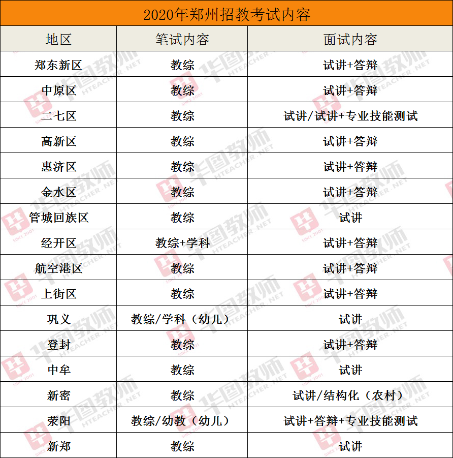 ◆ 郑州招教笔试主要以教综为主,面试以试讲+答辩为主。但是荥阳、巩义和经开区的笔试是教综+学科,面试差别其实不是太大,个别地区只有试讲。幼儿园的报考一般面试还会要求专业技能测试。
